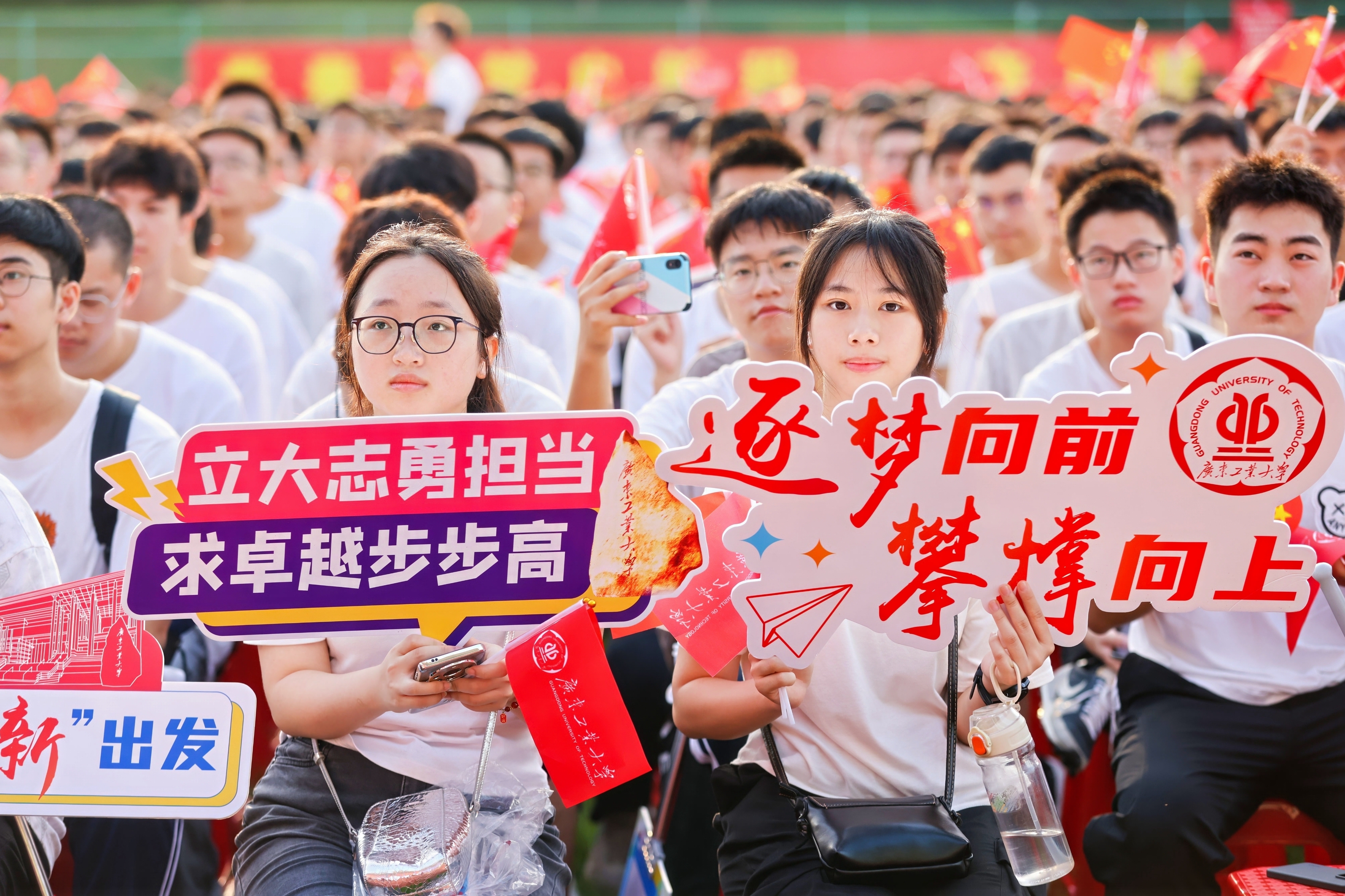 邱学青对“生逢其时、重任在肩”的新同学们提出了三点希望:一是志存高远,脚踏实地,为“逐梦”破局立势,“美好的理想不会自动成真,远大的志向不会一蹴而就,”希望大家把“攀撑精神”融进血脉,逐梦步履永不停息;二是立身百行,以学为基,为“提质”夯基垒台,希望大家把“要我学”变为“我要学”,求真学问,练真本领,在广工这片科研创新氛围浓厚的沃土承担起推动科技创新、实现科技强国的历史使命;三是躬身入局,扛鼎担责,为“强国”奋楫笃行,希望大家以敏锐的观察力发掘社会需求,以倾听的姿态捕捉人民心声,以积极的行动回应时代召唤,成为有理想、敢担当、能吃苦、肯奋斗的新时代青年。