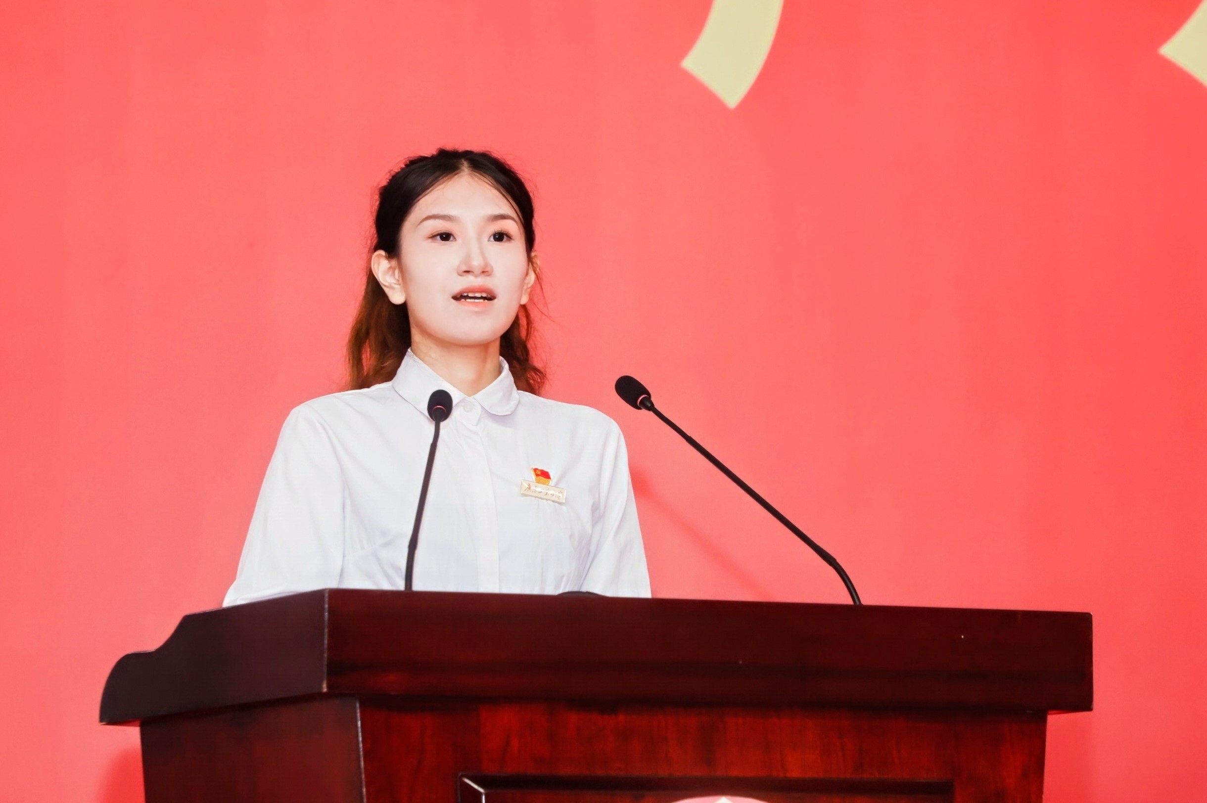 管理学院本科在校生黄芷铟与师弟师妹分享感悟,作为一名“广工人”走得再远也不忘来自哪里,要追求理论与实践双重成长,要向下扎根、向上成长,在服务他人中实现自我。