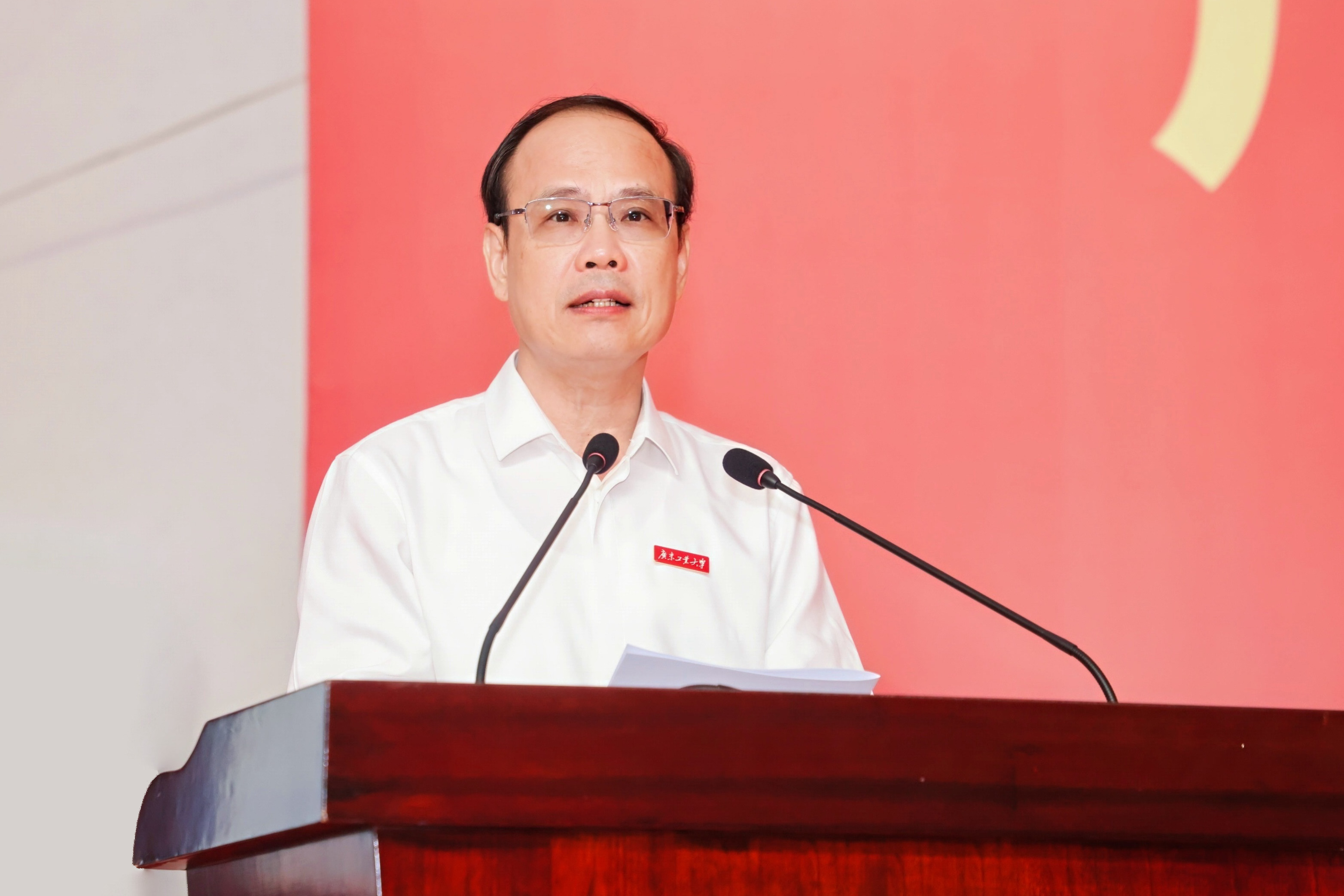 邱学青以《争做攀撑广工人 勇当新质生力军》为题作讲话。他代表学校对新同学表示热烈欢迎,“寒窗之旅,冠军之路,背后是共同的拼尽全力,是一样的永不放弃。”他表示,送给大家的“热血青春‘篮’不住”为主题的录取通知礼盒以及签名球衣,传递的不仅仅是祝贺和喜悦,更寄托传承着“勇于拼搏、敢于胜利”广工精神。“选择广工,你们将度过怎样的大学生涯?”他说,唯有经历钻研之苦,面对质疑之辣,承受挫折之酸,方能品味成长之甜,最终找到属于自己的精彩答案。