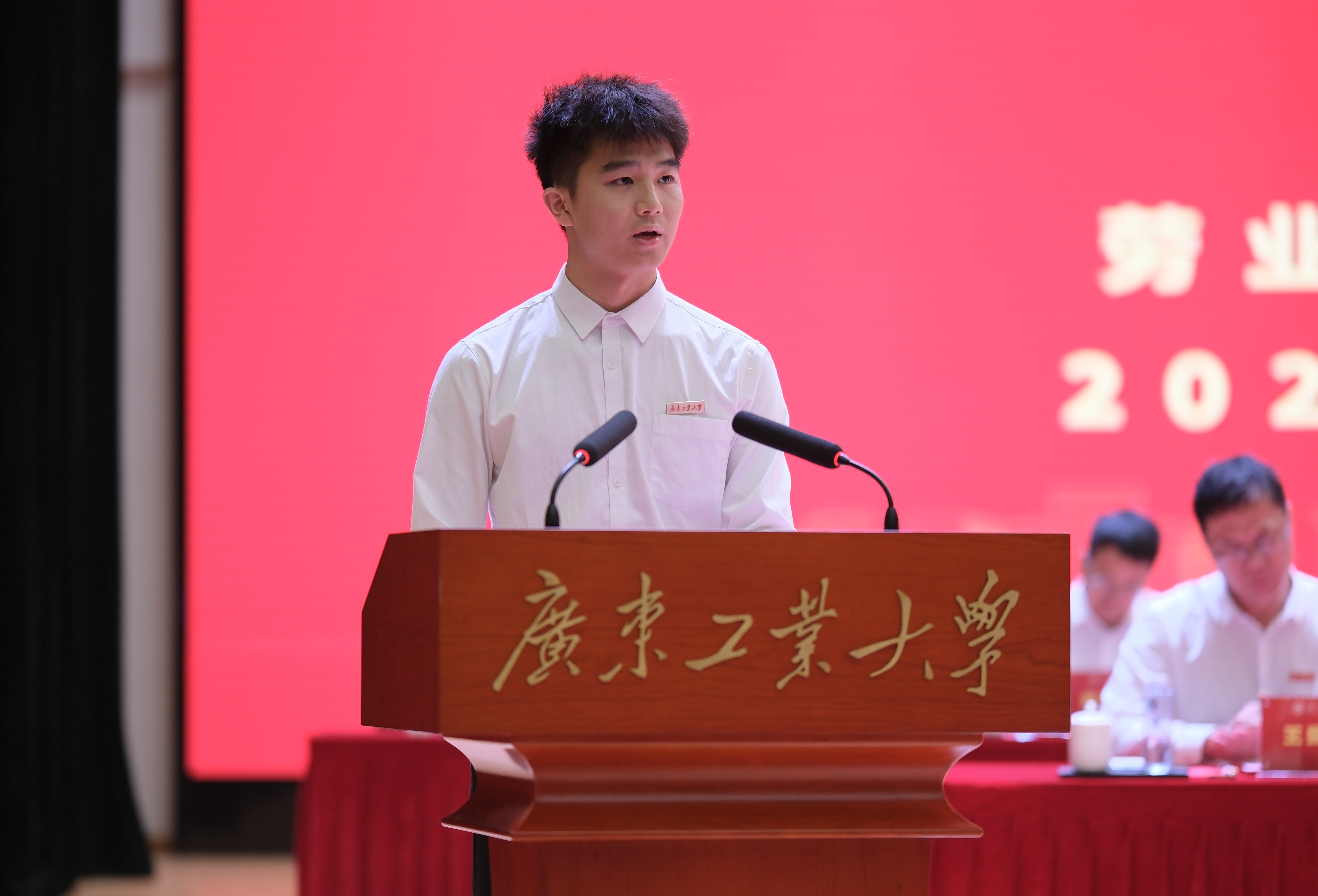 先进制造学院本科在校生劳业成向新“广工人”发起倡议:不忘“请党放心,强国有我”的初心,传承“攀撑精神”,厚植“爱校荣校”情怀,脚踏实地、勤于悟道,跑出新时代的广工“加速度”。