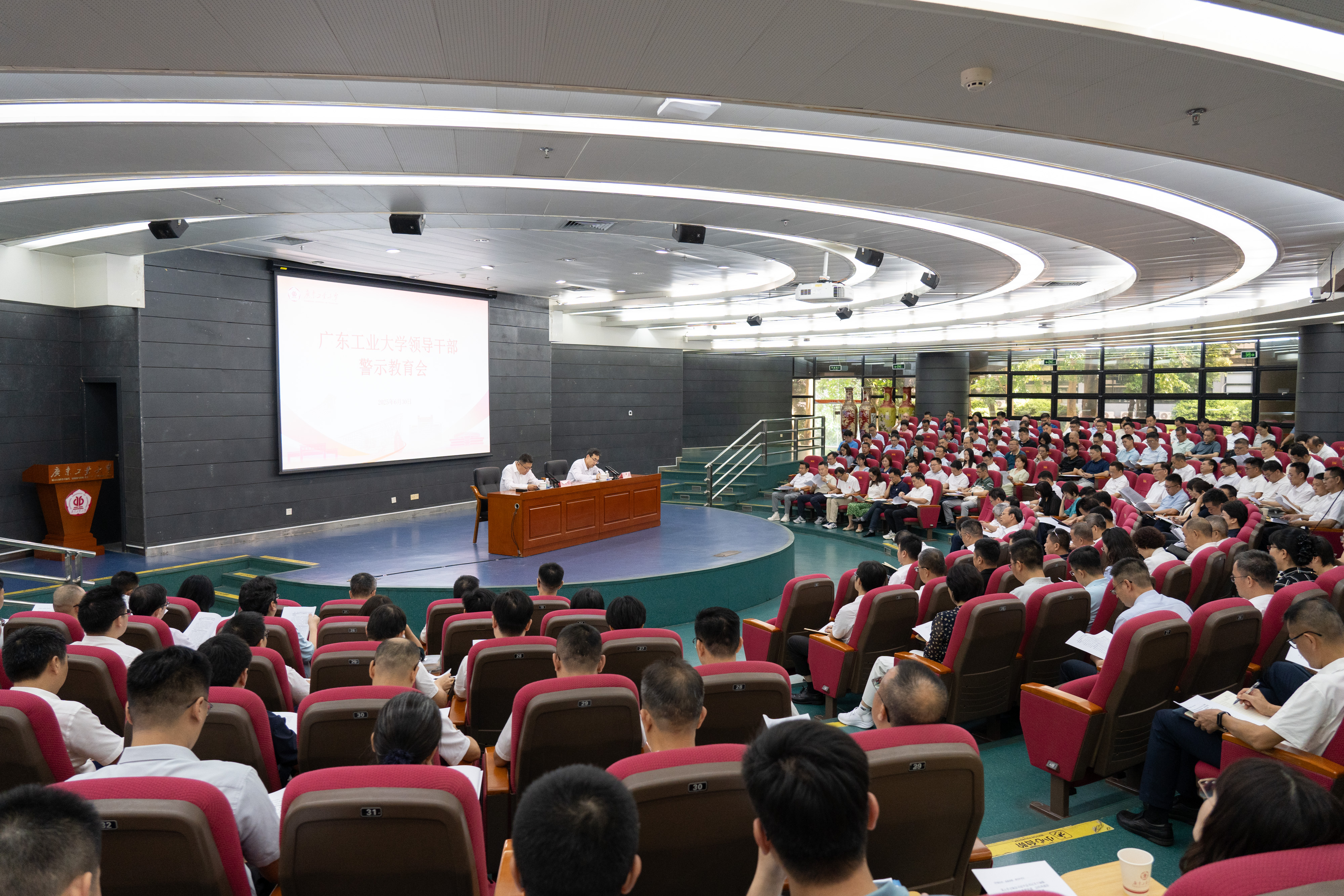 根据深入贯彻中央八项规定精神学习教育工作安排,6月30日上午,学校召开全校领导干部警示教育会暨党委理论学习中心组(扩大)学习会。校党委书记白建刚主持并讲授专题党课,党委副书记、校长邱学青作总结讲话,党委常委、纪委书记、广东省监委驻九州·体育(中国)官方网站监察专员庞建国作警示教育辅导报告。全体校领导、校党委理论学习中心组成员、中层领导干部参加会议。