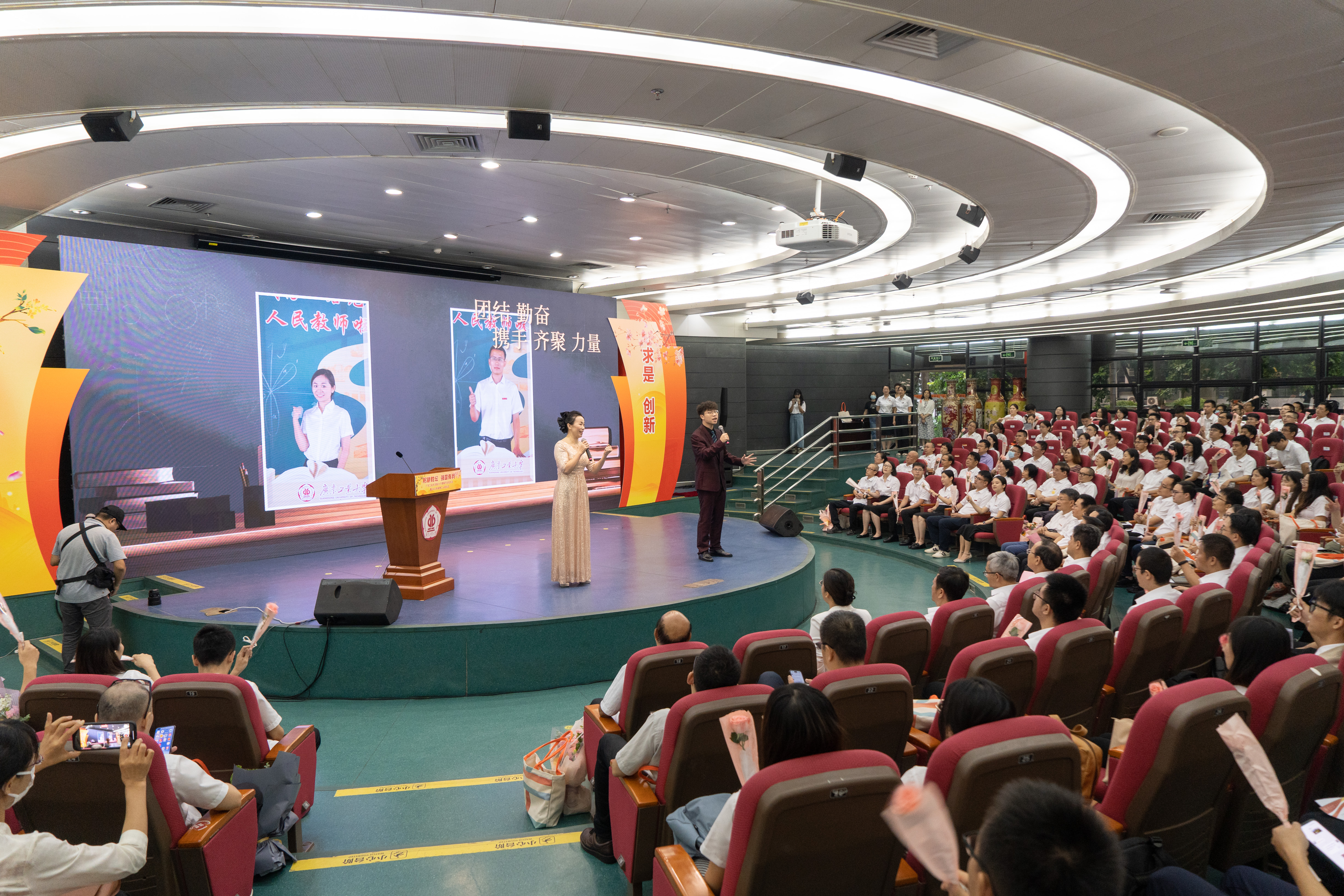 学校党委书记胡钦太致辞。他代表学校向辛勤耕耘在教学、科研、管理和服务一线的广大教师致以节日的问候和美好祝福!他强调,教师是立教之本、兴教之源,要深入学习贯彻习近平新时代中国特色社会主义思想和党的二十大精神,提高政治站位,踔厉奋发、铸魂育人,打造高素质、高质量教师队伍。他指出,作为一名人民教师,要有家国情怀、道德情怀、教学情怀和学术情怀,心怀“国之大者”,当理想信念的“筑梦人”、师德高尚的“引路人”、传道授业解惑的“大先生”。他寄语广大教师特别是新教工,不忘立德树人初心,胸怀大志、心有大我、肩负大任、行有大德,践行崇高师德、涵养师者匠心、厚植教育情怀,继续扎根南粤、砥砺前行,不断开创学校高质量发展新局面,为建设教育强国、科技强国、人才强国作出更大贡献。