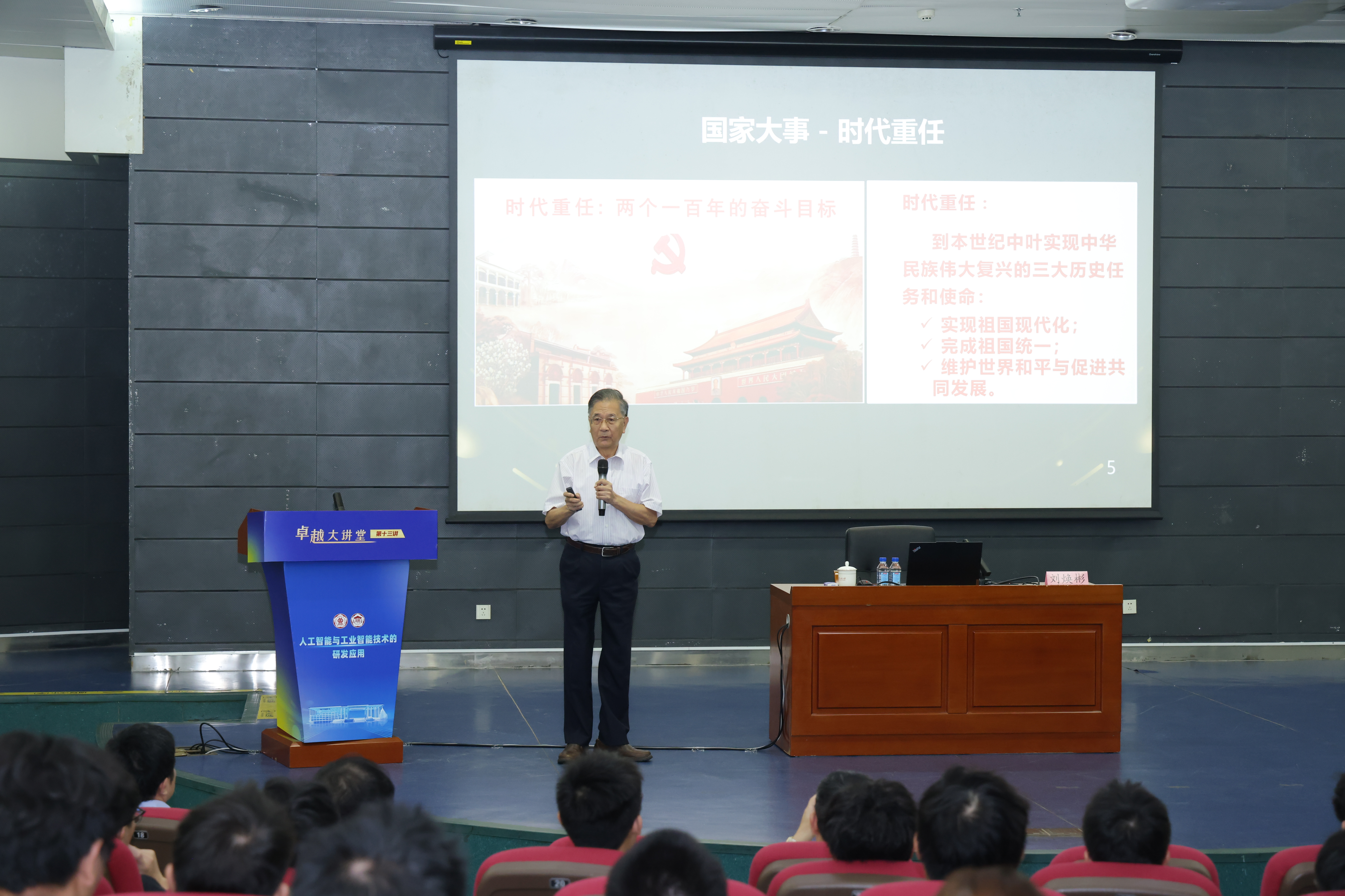 “立志做大事,勤奋创未来”,年过八旬的刘焕彬院士以铿锵之音开启报告会,他表示,推进“人工智能+”是国家战略行动,要以国家发展的时代任务为己任,树立责任人生、奋斗人生、奉献人生的价值观,把个人理想融入国家发展。接着,刘焕彬院士阐释了何谓人工智能,并以小孩骑单车避行人过程类比,生动地说明如何通过计算机模拟人类智能行为基本要素。他还系统介绍了工业AI技术的研发逻辑、系统架构及实际应用案例,并分享了其团队在推动传统产业智能化转型中的实践经验。他强调,每个学生在深耕行业的同时,要培养与人工智能协同工作的能力,在人工智能与行业之间搭桥,做“AI+架构师”,成为懂人工智能的跨领域的人才。在互动环节,刘焕彬院士对学生提出的问题作了耐心解答。