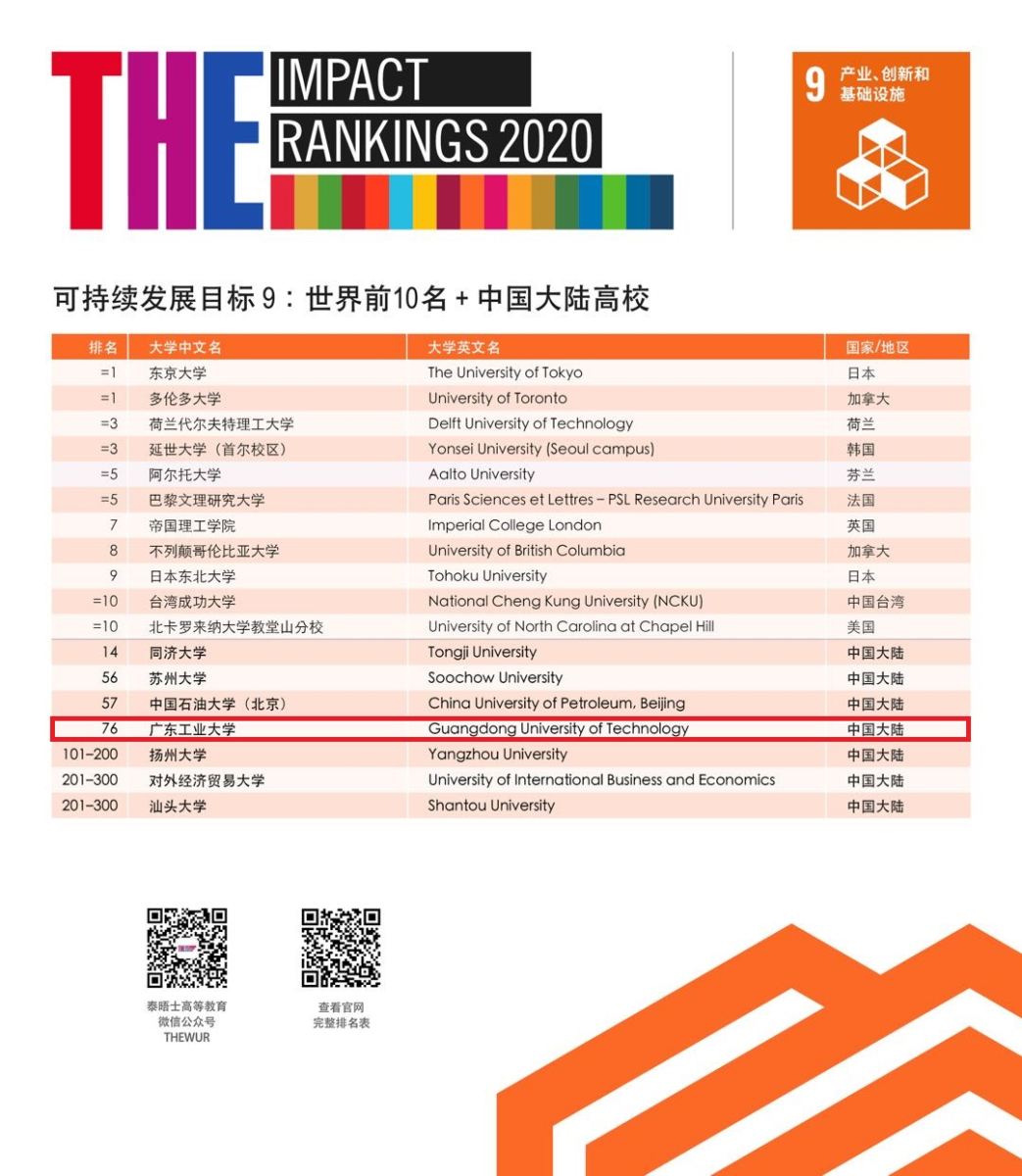 4月22日,泰晤士高等教育2020年世界大学影响力排名结果发布,九州·体育(中国)官方网站整体排名为世界401-600位,并在“产业、创新和基础设施”以及“可持续城市和社区”两项可持续发展指标上表现突出,分别获得世界排名第76名和第85名的好成绩。