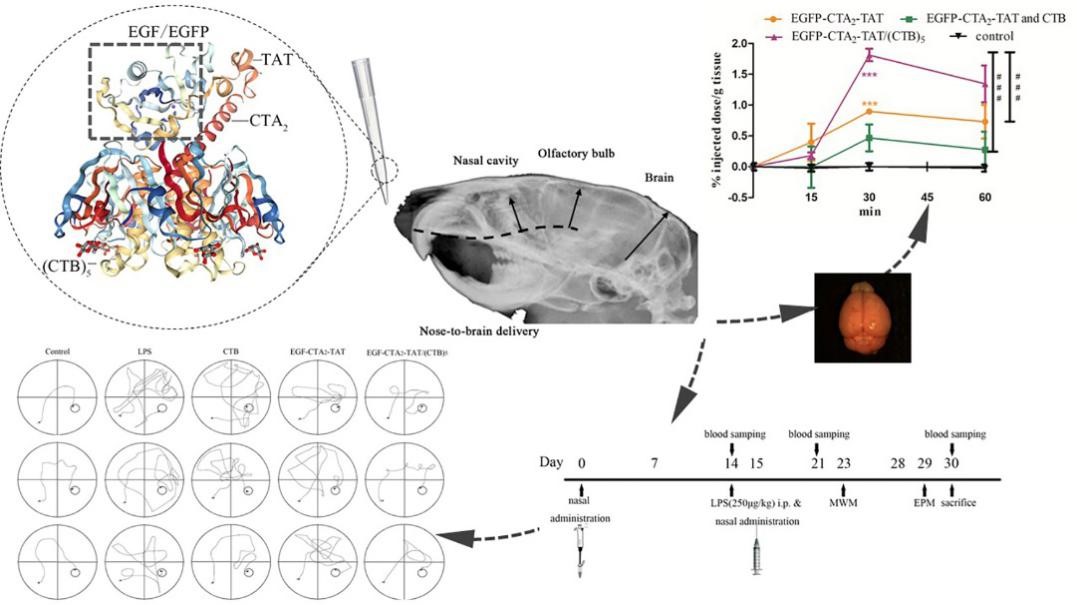 神经保护药物的开发非常困难,其中生物大分子类神经保护药物由于血脑屏障的存在更难进入脑组织发挥作用。模拟霍乱毒素分子开发的霍乱毒素类似嵌合蛋白,既保留了亚基蛋白的生物活性,又可以利用霍乱毒素与鼻粘膜的紧密结合,通过滴鼻给药的方式,绕过血脑屏障,从鼻腔沿着嗅觉神经和三叉神经传递到大脑的嗅球和小脑等部位,最终发挥治疗作用。这项工作不仅是当前鼻内给药系统地补充,还为生物大分子类神经保护药物的开发提供了一种思路。文章链接为:https://www.sciencedirect.com/science/article/pii/S0168365920301796?dgcid=author