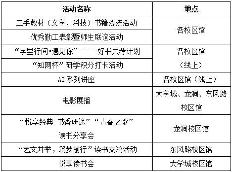 具体活动安排,请密切关注图书馆官网、公众号或订阅号通知。诚挚邀请全校师生积极参与各项活动,共同感受阅读与文化的无穷魅力!