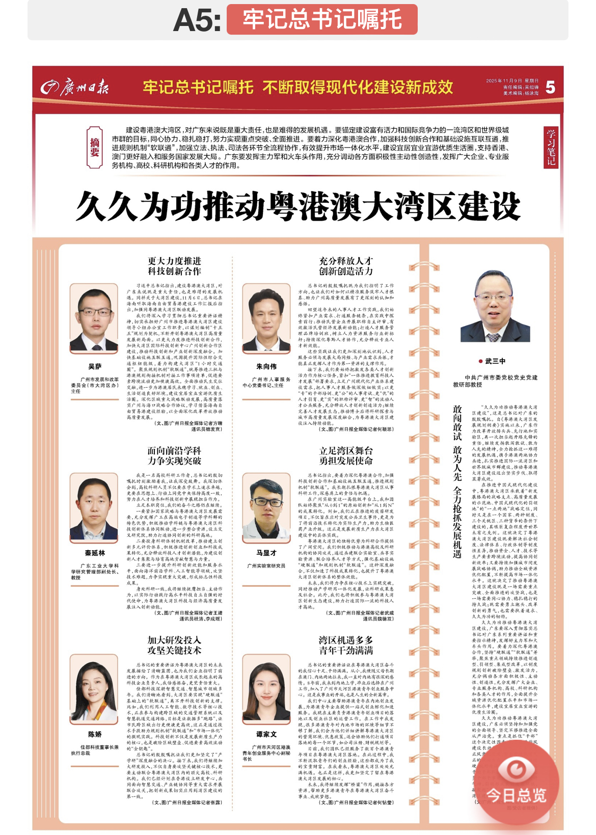 我们将深入学习贯彻总书记重要讲话精神,切实承担好广州市推进粤港澳大湾区建设领导小组办公室工作职责,以谋划编制“十五五”规划为契机,不断开创粤港澳大湾区高质量发展新局面。以更大力度推进科技创新合作,加快大湾区国际科技创新中心广州创新合作区建设,推动科技创新和产业创新深度融合。加快基础设施互联互通,巩固提升国际性综合交通枢纽能级,着力构建大湾区“1小时交通圈”。聚焦规则机制“软联通”,统筹推进三批与港澳规则衔接机制对接工作事项清单,促进要素跨境流动更加便捷高效。全面推动民生交往交融,进一步为港澳居民来穗学习、就业、创业、生活创造良好环境,建设宜居宜业宜游优质生活圈。深化区域重大战略联动发展,高质量落实广州与海口战略合作协议,学习借鉴海南自由贸易港建设经验,以全面深化改革开放推动高质量发展。(文、图/广州日报新花城记者:方晴 通讯员:穗发宣)